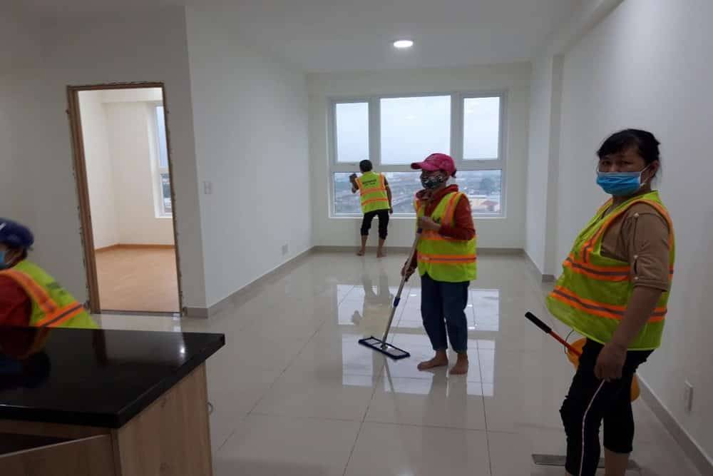 Công việc vệ sinh phải làm: Quét lau sàn, lau trang thiết bị, lau cửa kính, cửa thang máy, đẩy bụi sàn, thu gom đổ rác, làm sạch WC, lau thang bộ, rửa thùng rác, phân loại rác thải sản xuất,…Định kỳ sẽ đánh sàn bằng máy, kéo kính tầm cao, tổng vệ sinh nhà xưởng trên cao.